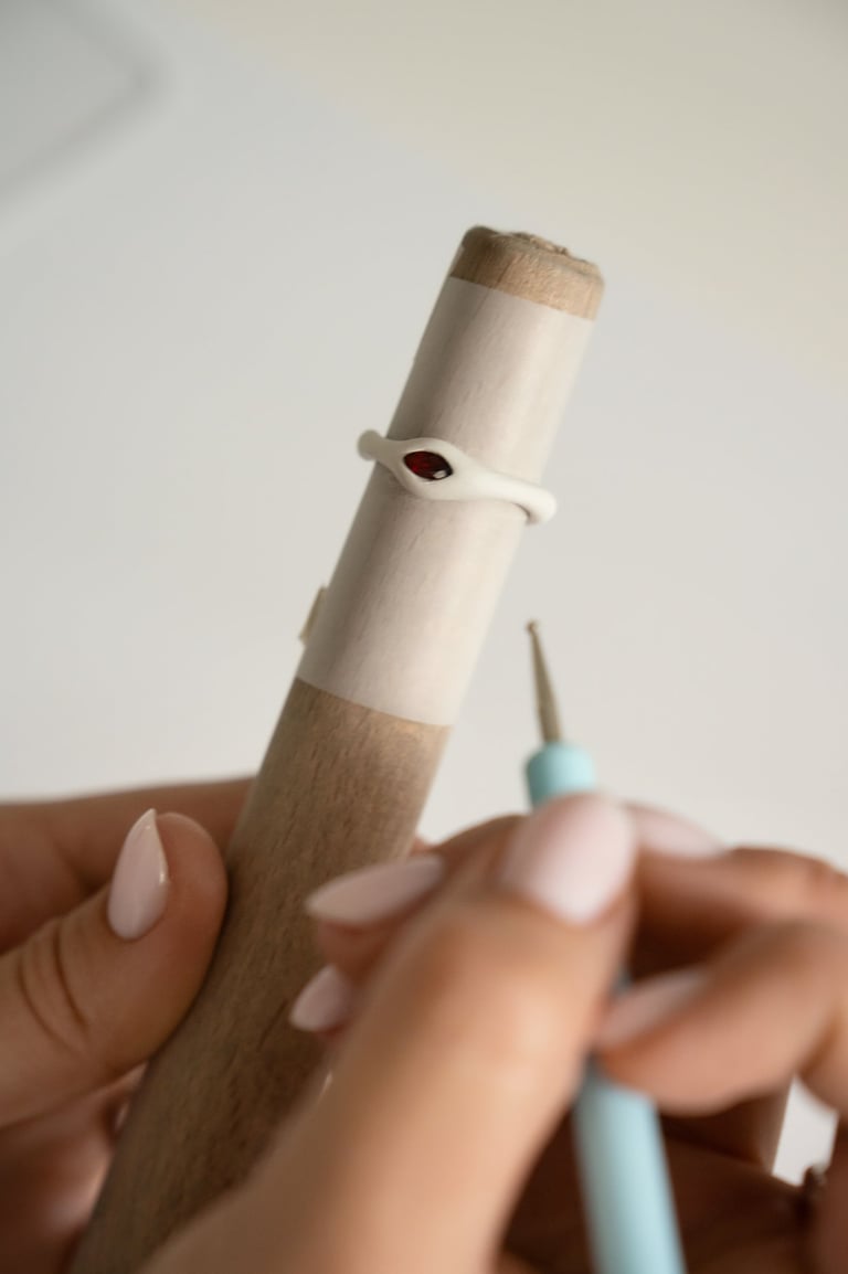 Formuojate žiedą ir įstatote akmenukus
